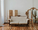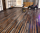 - Индустриальный или промышленный паркет — отличается от обычного только внешним видом. Этот тип отделки изготавливают из массива, поэтому он исключительно твердый, прочный и надежный, однако на его создание идет разномастная древесина, из-за чего невозможно получить элементы в одном цвете и с однотипной фактурой. Это — единственный недостаток покрытия. Такая разнородность, безусловно, неуместна в классическом или минималистичном интерьере, однако в то же время она прекрасно вписывается в лофт, рустик и экостиль.