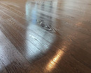 - Дерево чувствительно к изменению уровня влажности, боится агрессивной химии, а на полах из мягких пород могут оставаться вмятины от ножек мебели, каблуков и т.д. Частично эту проблему решает защитное финишное покрытие: как минимум, оно может уберечь древесину от влаги, царапин и быстрого истирания.