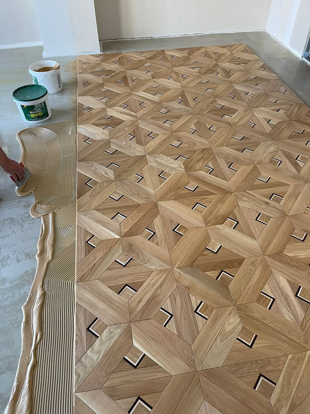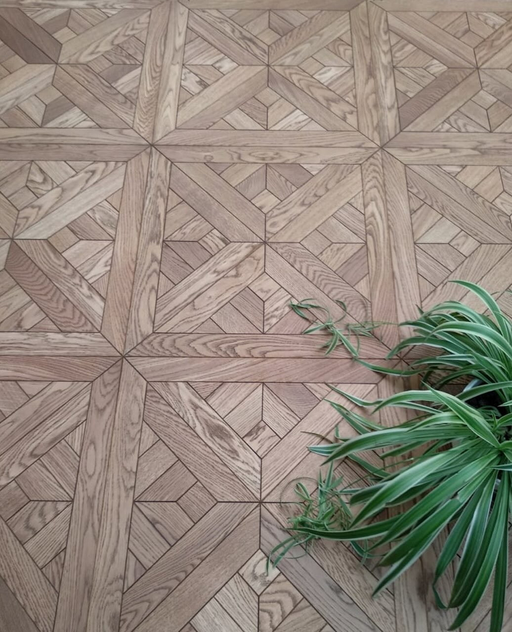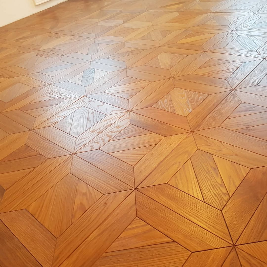 Это самый дорогой вид паркета для пола. После укладки он представляет собой сложные картины из замысловатых узоров. Чтобы рисунок был хорошо виден, для такого покрытия применяют древесину разных, часто контрастных, оттенков.