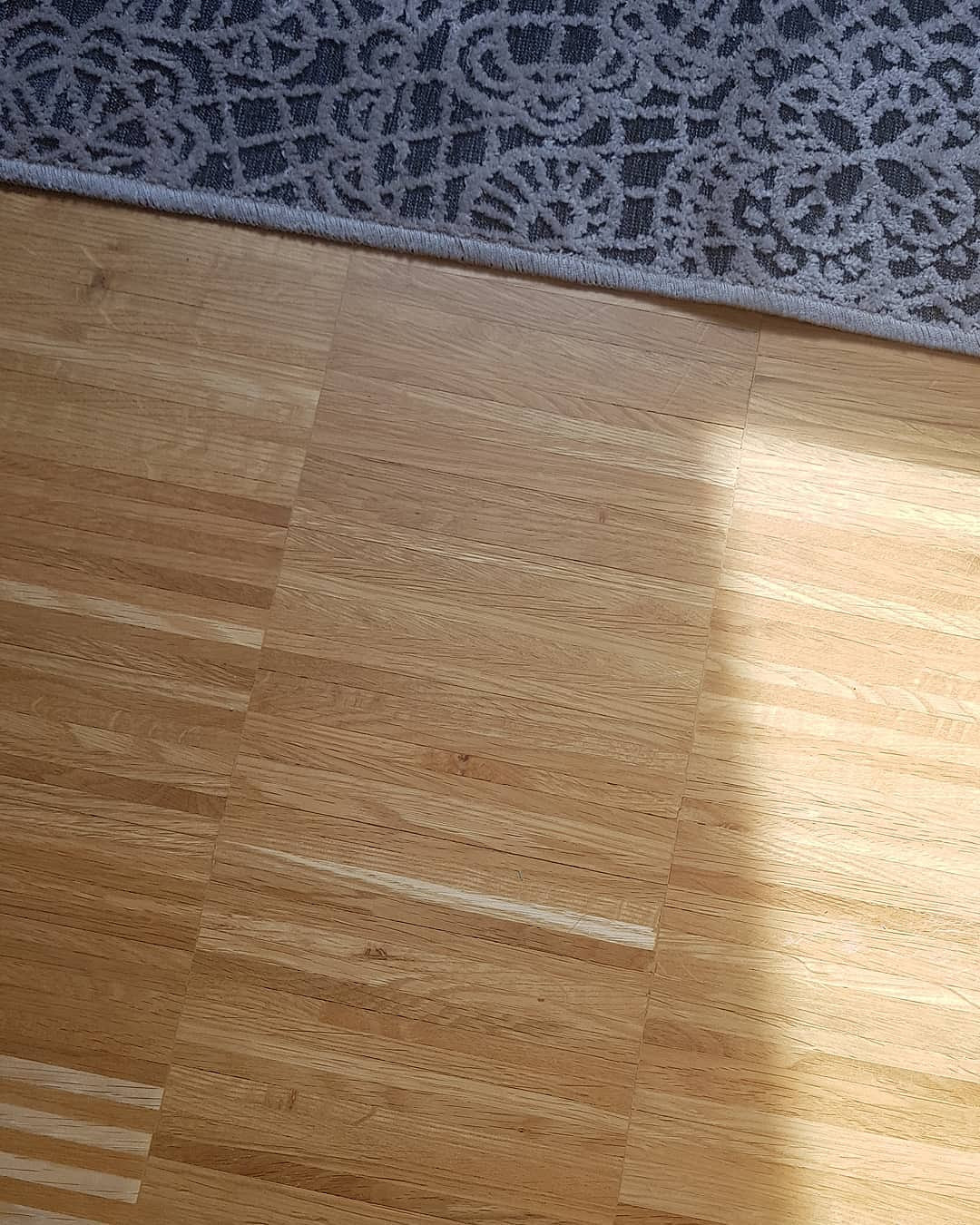 Также надо понимать, что дерево требует особого ухода — несложного, но обязательного, иначе без него пол придет в негодность за несколько лет. Паркет не терпит большого количества воды, то есть мыть его надо только очень хорошо отжатой тряпкой и только щадящими моющими средствами. Он легко царапается от песка и другого твердого мусора, поэтому в квартире желательно ежедневно запускать робот-пылесос. Вдобавок к этому периодически придется обновлять финишное покрытие: лак — каждые 2-3 года, масло — каждые полгода-год.
