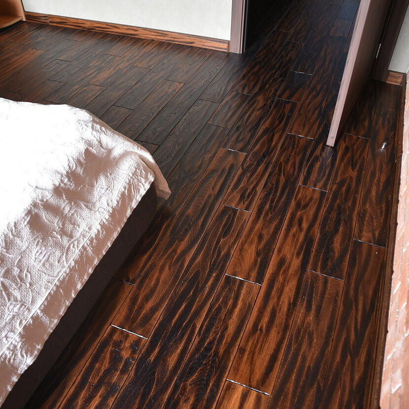 - Брашированный паркет — это не отдельный вид деревянного покрытия, а особый способ его обработки. Он подразумевает устранение мягких частей древесины с помощью щеток. За счет этого пол приобретает благородный «старинный» вид, кроме того, на нем меньше видны царапины и другие мелкие повреждения.