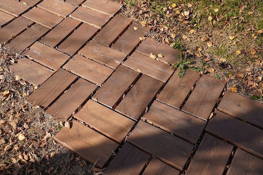 - Садовый декинг — это модули либо доски, предназначенные для улицы (ими оформляют дорожки на участке, террасы, балконы и т.д.). Поскольку натуральная древесина быстро портится под действием осадков и перепадов температур, этот тип отделки делают из ДПК — древесно-полимерного композита. Визуально он очень похож на дерево, но благодаря полимерным добавкам более стойко переносит любую погоду и не выгорает под солнцем.