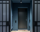 - Темные тона — черный, глубокий синий, антрацитово-серый. Это смелый прием для помещений с достаточно высоким потолком, потому что темные оттенки так или иначе скрадывают пространство, особенно на контрасте с более светлыми стенами и мебелью.