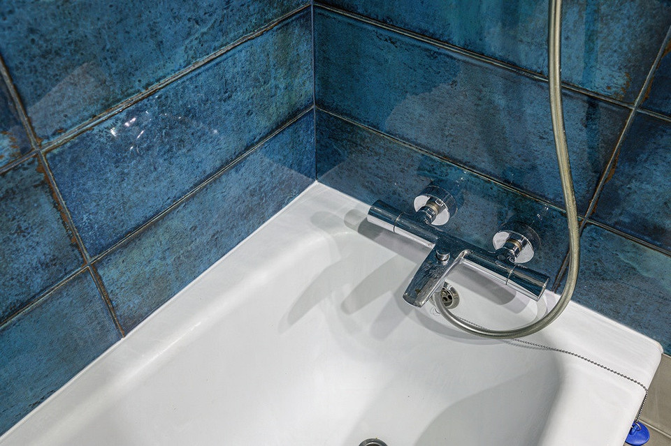 - Если стены выложены плиткой, можно положить над бортиком керамический бордюр. Его приклеивают на плиточный клей или жидкие гвозди.