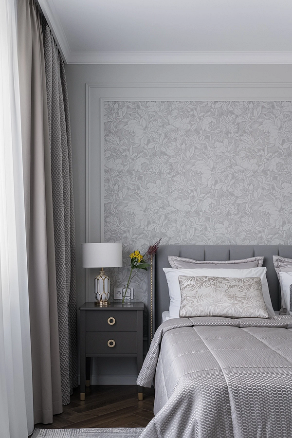 Светло-серый — безопасная, но не банальная база. Это идеальный фон для отделки с рисунком и многослойного текстиля. Он хорошо смотрится в классических и современных интерьерах, подходит для комнат разной площади. В маленьких так же, как и чистый белый, создает ощущение простора. А если захочется добавить в сдержанный интерьер красок, это легко сделать с помощью декора или другого, более яркого текстиля.