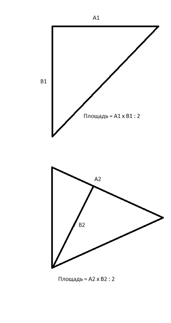 - Для треугольника с углом 90 градусов измерьте стороны, которые отходят от этого угла. Переведите из сантиметров в метры, перемножьте и разделите на 2. Вы получите площадь треугольника в м2.