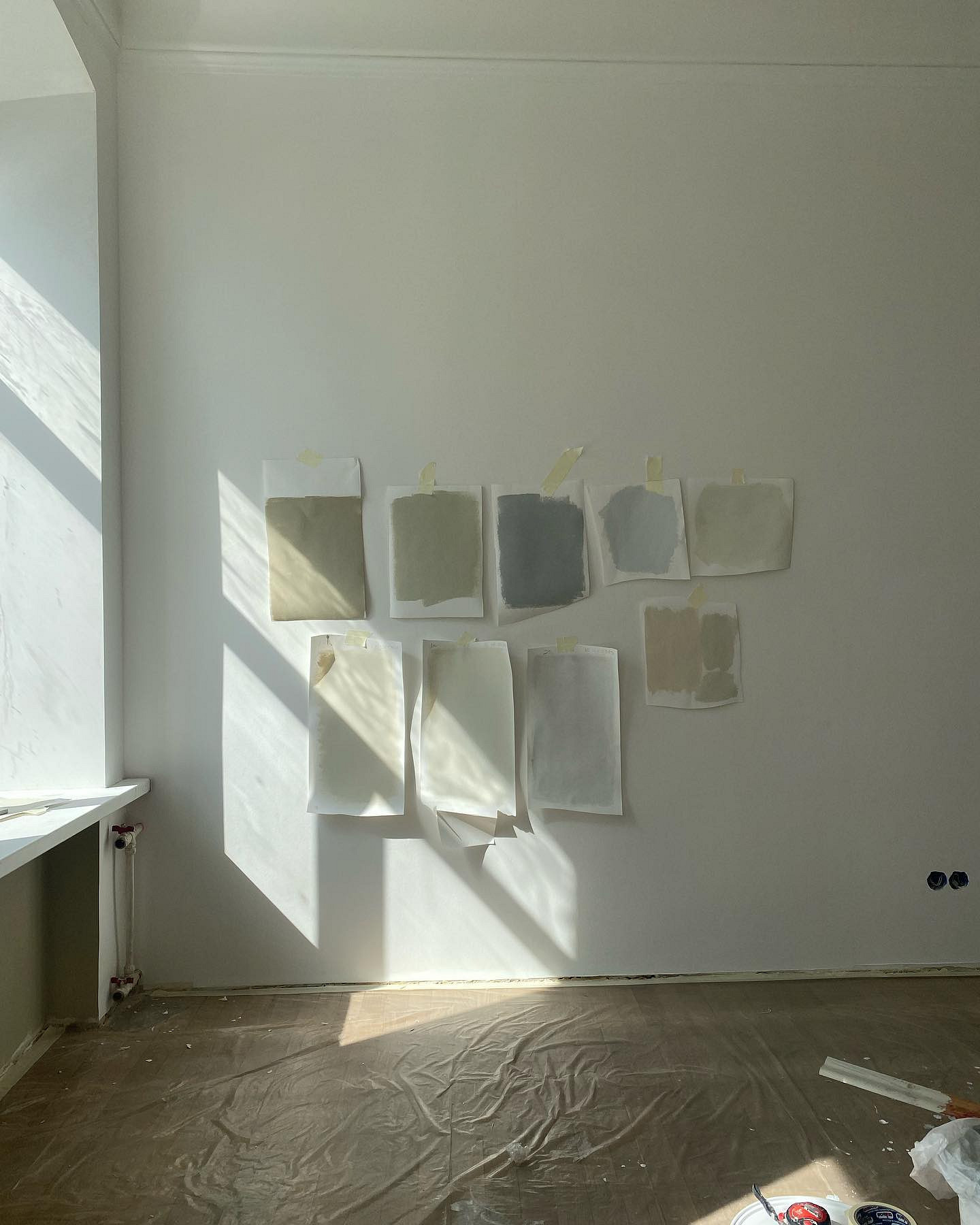 Всегда делайте выкрасы на стене или листе бумаги, желательно не меньше формата А4 и сразу в нескольких местах. Посмотрите на цвет утром, днем и вечером, под разными углами. Только так можно понять, как тот или иной оттенок поведет себя в пространстве.