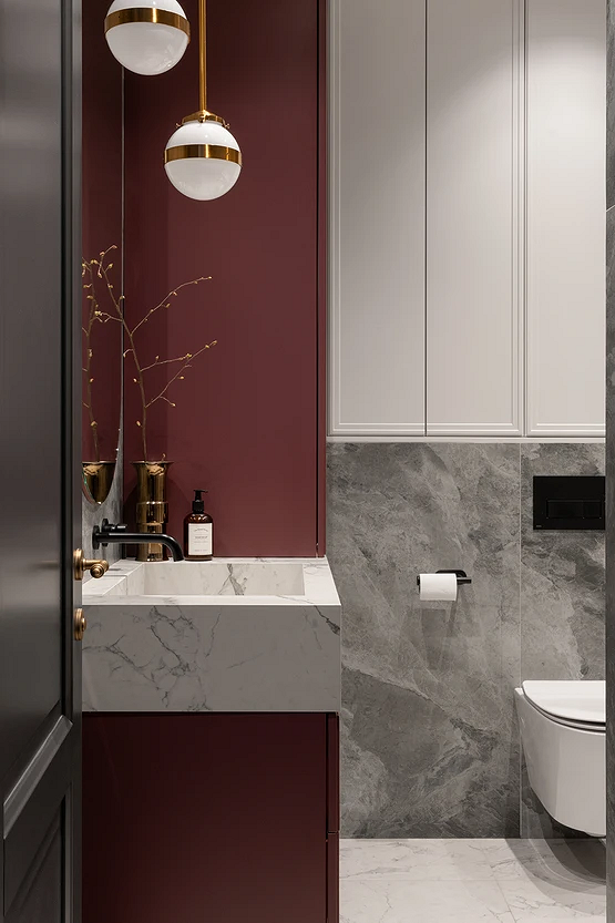Выбирайте сложные глубокие оттенки с примесью серого, бежевого или других цветов: например, винный вместо ярко-красного или оливковый вместо чистого зеленого. Они выглядят спокойнее и дороже, даже будучи насыщенными. Такой цвет стен легче вписать в интерьер и поддержать декором.