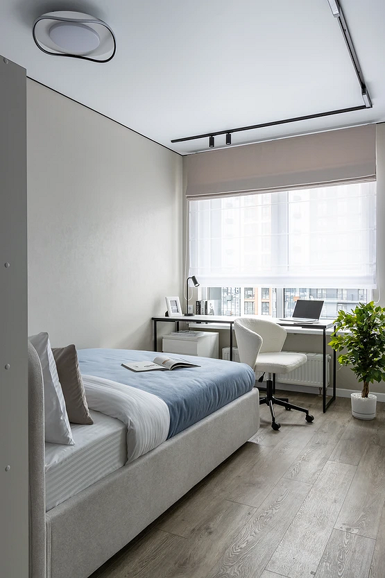 Сначала оцените, какой свет преобладает в помещении. Для северной стороны лучше выбрать более теплые оттенки. В хорошо освещенных помещениях можно позволить себе холодные тона. И обязательно проверяйте цвет при включенных светильниках, а не только днем. Еще лучше, если получится оценить выкрас или образец отделки и в солнечную, и в пасмурную погоду.