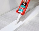 Иногда в качестве клея выбирают монтажную пену. Она хорошо держит утеплитель на бетоне или кирпиче, применяется для прикрепления плинтусов на основу без отделки. Пеной просто пользоваться, она дает прочное соединение, недорогая. Правда, если в составе пены есть вещества, растворяющие стирол, она не соединит, а только испортит элементы. Это нужно учесть перед ее применением.