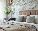 Комбинированные обои в спальне должны поддерживать общий дизайн и создавать уютную расслабленную атмосферу. Обычно для зоны отдыха выбирают ненавязчивые геометрические или абстрактные узоры, также очень популярная растительная тематика, стилизованные японские или китайские орнаменты.