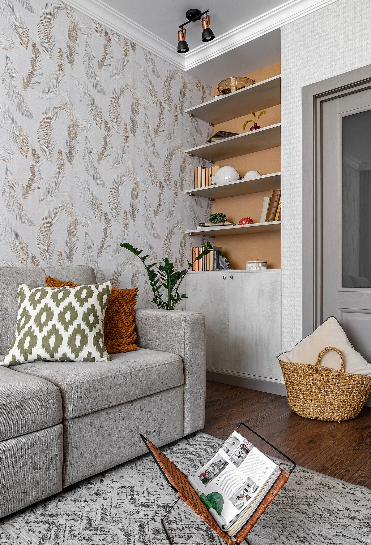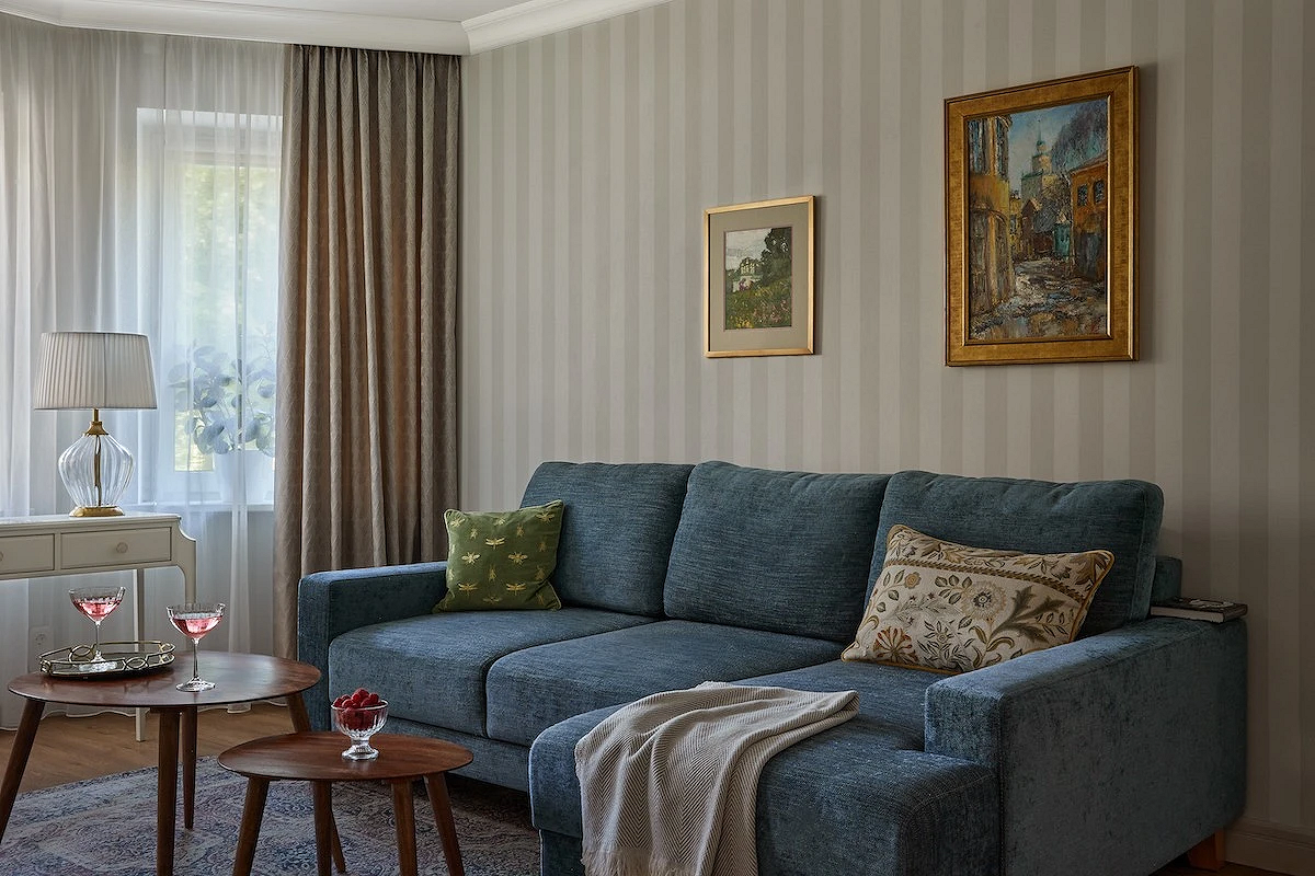 Если вы используете узоры, они должны быть некрупными (это создаст диссонанс масштабов), неконтрастными и достаточно простыми по самой структуре. Если комната не просто маленькая, но и, например, с низкими потолками, используйте отделку, чтобы визуально добавить им высоты. Так, например, можно выбрать комбинированные обои в зал или спальню в вертикальную полоску либо с вытянутыми вверх рисунками.