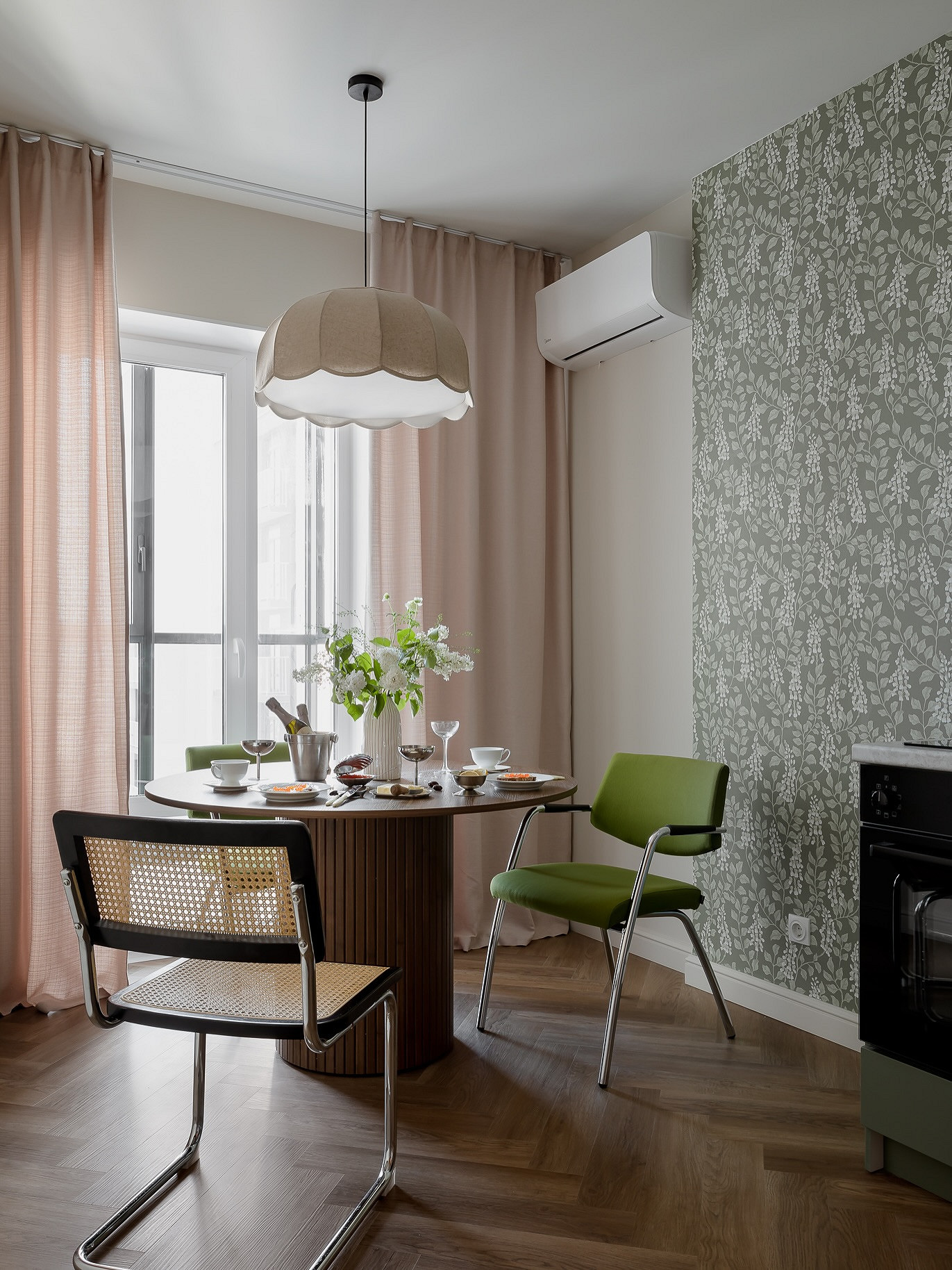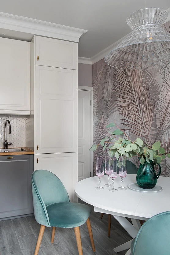 Как комбинировать обои на кухне