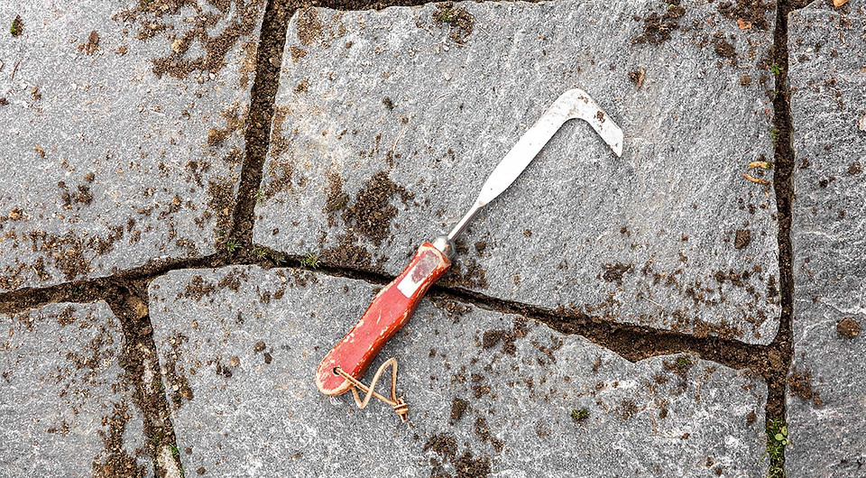 Щелевой очиститель станет помощником для обладателей брусчатки, плитки или дорожек из каменных слэбов. Он представляет собой достаточно тонкий металлический наконечник, загнутый в виде буквы Г. Многие модели имеют заточенный край для подсекания корней. Некоторые оснащены ручками-удлинителями, чтобы можно было работать не наклоняясь.