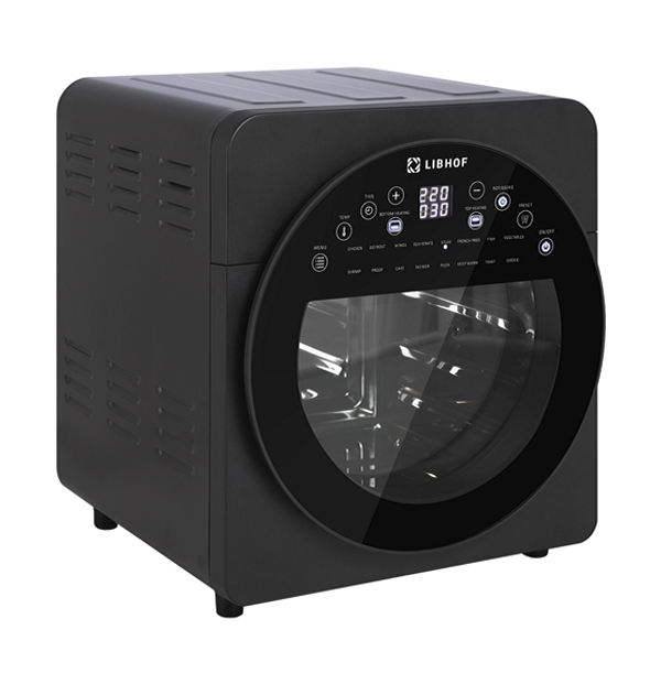 Мощный аэрогриль с двумя ТЭНами, средним объемом отлично пропекает любое блюдо со всех сторон.