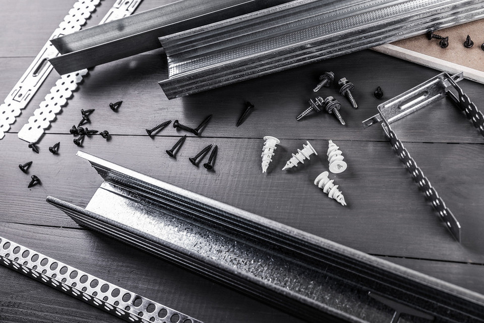 При установке каркаса под гипсокартон самое сложное — рассчитать нужное количество соединительных элементов. Стоит сразу нарисовать план перегородки или потолка в масштабе и проложить по нему профили, разметив места их соединения друг с другом и с поверхностью. При монтаже стенового каркаса берут 1 подвес на каждые 60-80 см высоты. Количество других соединителей зависит только от сложности конструкции.