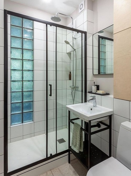 Производители предлагают матовые, рельефные, белые, цветные стеклоблоки. Последние могут стать альтернативой витражам. Они в маленьких хрущевских санузлах обычно теряются и делают интерьер напыщенным и претенциозным.
