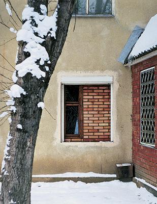 Незаконная закладка кирпичом оконных проемов первого этажа в многоквартирном доме (два разных окна на фасадах одного дома).